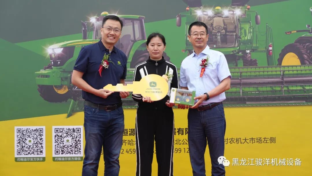 隨后,約翰迪爾領(lǐng)導(dǎo)層為黑龍江恒源迪農(nóng)業(yè)開(kāi)業(yè)剪彩并向用戶交付了8600青貯機(jī)、S760收割機(jī)和6M-2104拖拉機(jī)金鑰匙。