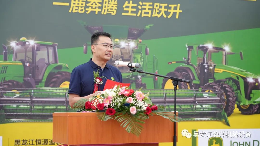 黑龍江恒源迪農(nóng)業(yè)發(fā)展有限公司總經(jīng)理杜立志發(fā)表了開(kāi)場(chǎng)致辭(下圖)。他表示,作為迪爾授權(quán)經(jīng)銷商,恒源迪農(nóng)業(yè)將不負(fù)約翰迪爾公司和用戶朋友的信任與期待,砥礪前行、全心全力的將迪爾品牌的核心價(jià)值觀“誠(chéng)實(shí)、優(yōu)質(zhì)、守信、創(chuàng)新”發(fā)揚(yáng)光大。公司有著完備的市場(chǎng)推廣、售后服務(wù)、配件供應(yīng)體系和經(jīng)驗(yàn),相信會(huì)給用戶帶來(lái)更好的產(chǎn)品使用體驗(yàn),讓用戶創(chuàng)造更大收益,為黑龍江現(xiàn)代農(nóng)業(yè)特別是農(nóng)機(jī)現(xiàn)代化的發(fā)展添磚加瓦。